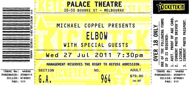 Elbow are, in my opinion, one the finest acts you could ever see live, and tonight’s gig was no different. This was my fourth outing to an Elbow show, and I’m lucky enough to be seeing them at Splendour In The Grass this Sunday as well.