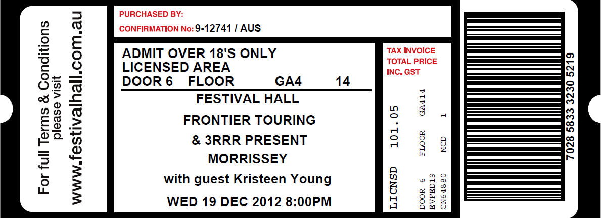 Morrissey Setlist Festival Hall, Melbourne, Australia 2012