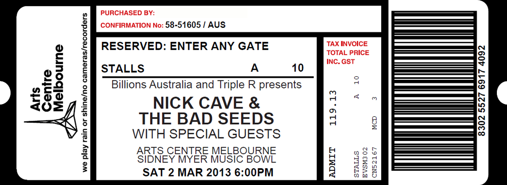 After an eleven year break from seeing Nick Cave and The Bad Seeds (apart from Grinderman at Meredith 2011, but that doesn’t really count), I’m wondering why I haven’t been more vigilant with seeing them when they tour. Rest assured, I’ll be there next time, and the time after that.